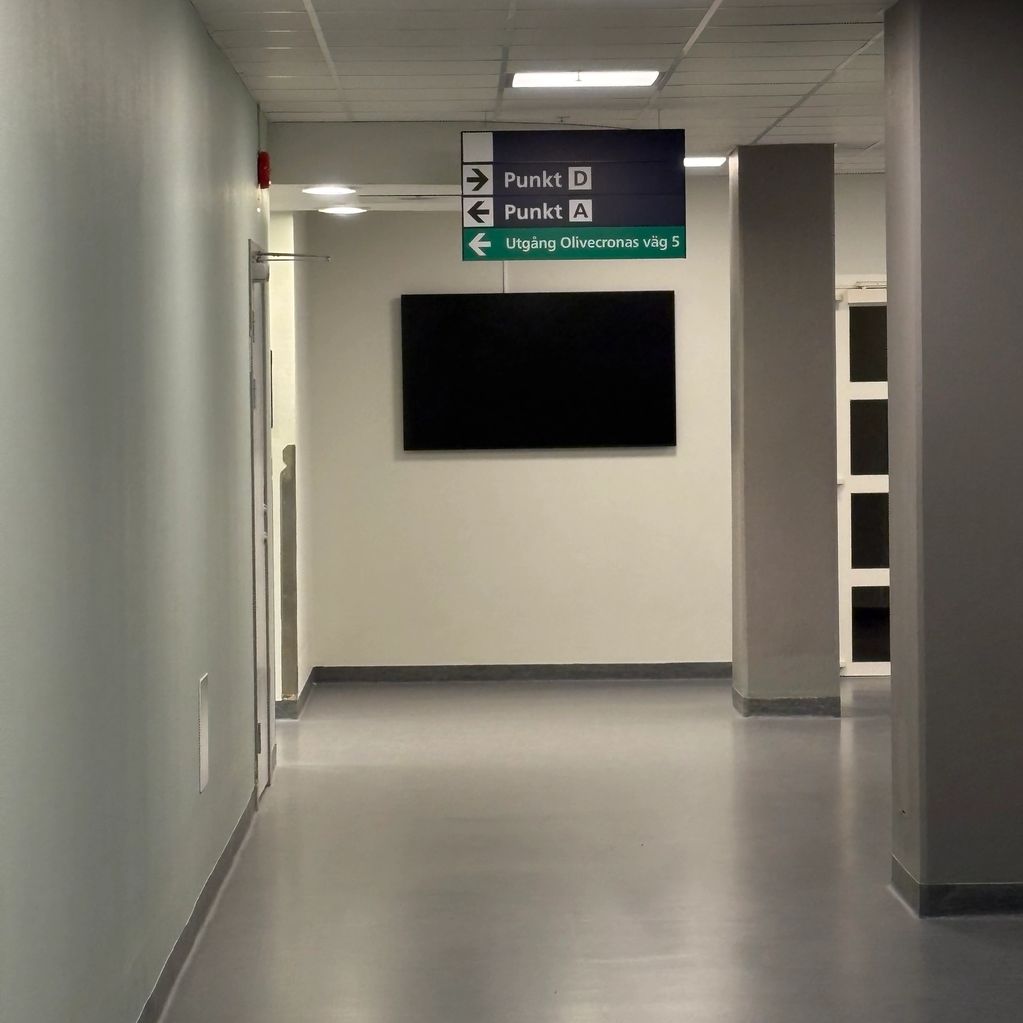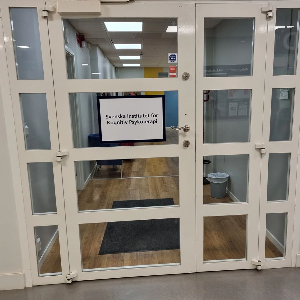 I slutet av korridoren ser du Svenska Kognitiva Institutet till höger om skärmen du ser på bilden.